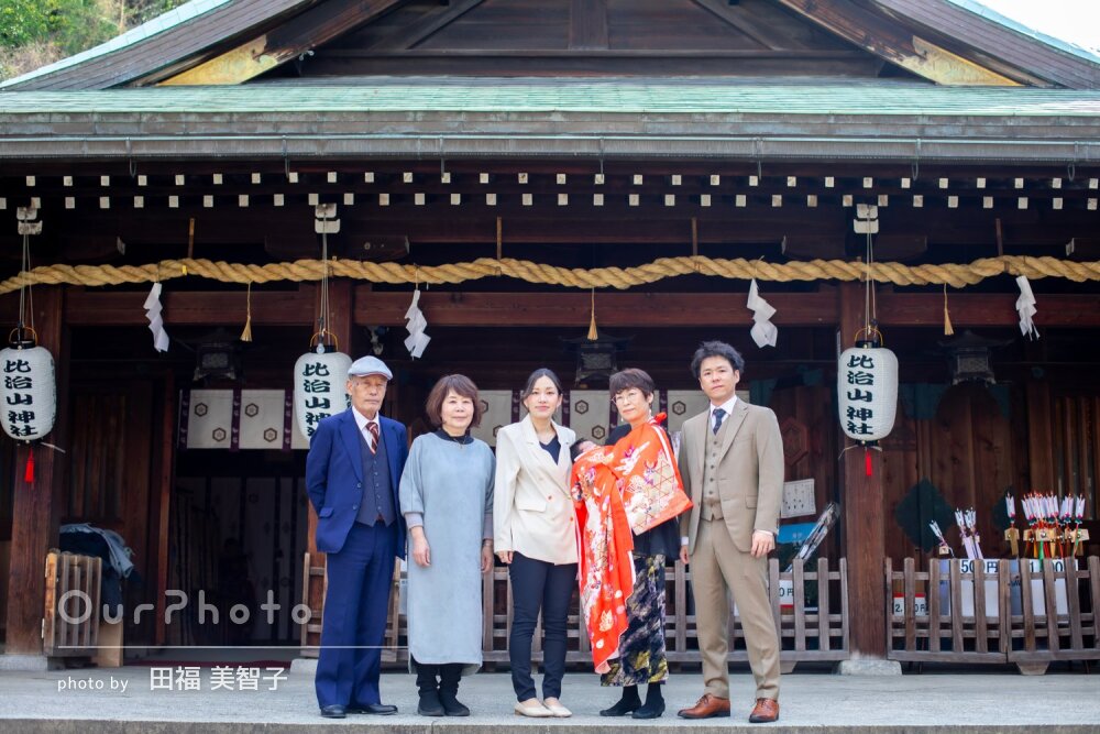 結婚式の前撮りから数年、家族が増えたので第二子のお宮参りの撮影をお願いしました。