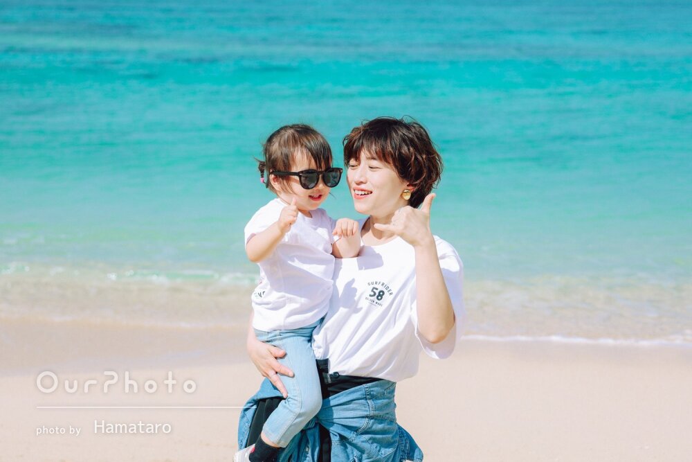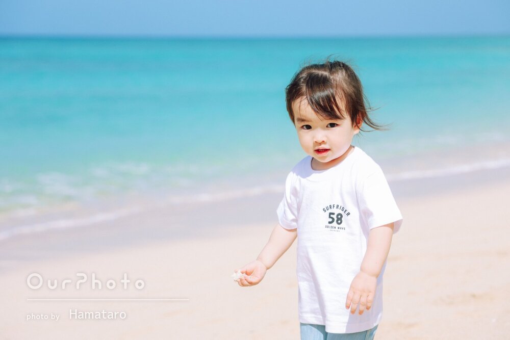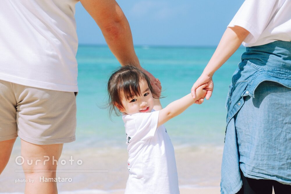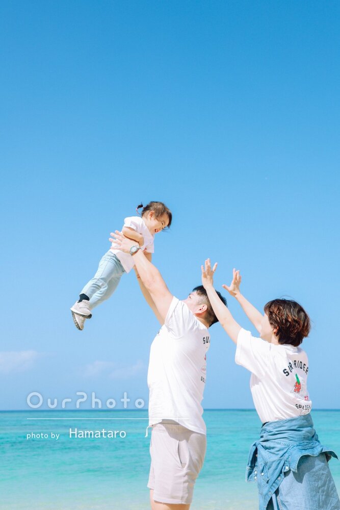 沖縄旅行の記念に0歳の娘との家族写真を撮影してもらいました!
