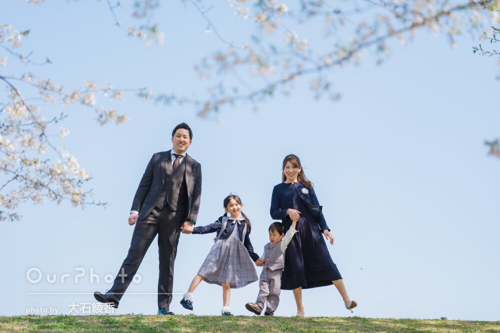 今回は素敵なお写真、誠にありがとうございました!お花見や春休みの影響で周辺道路・駐車場が混雑しており、かなりバタバタした状態で撮影に臨んだものの、とても穏やかに無理のないスケジュールで撮影をしていただきました。撮影中には荷物や体力、赤ちゃんのご機嫌など終始細やかな気遣いをしていただき、安心して過ごすことができました。