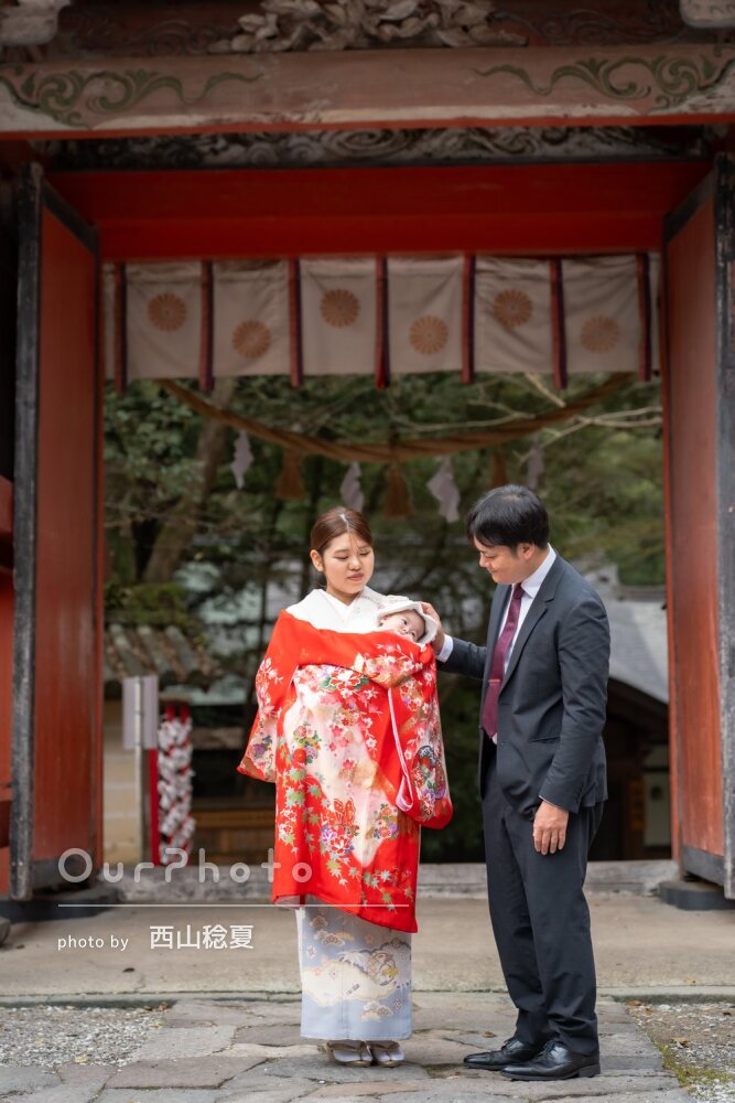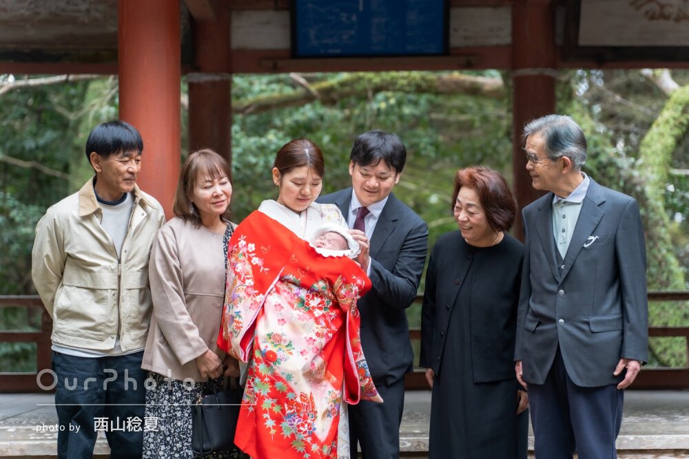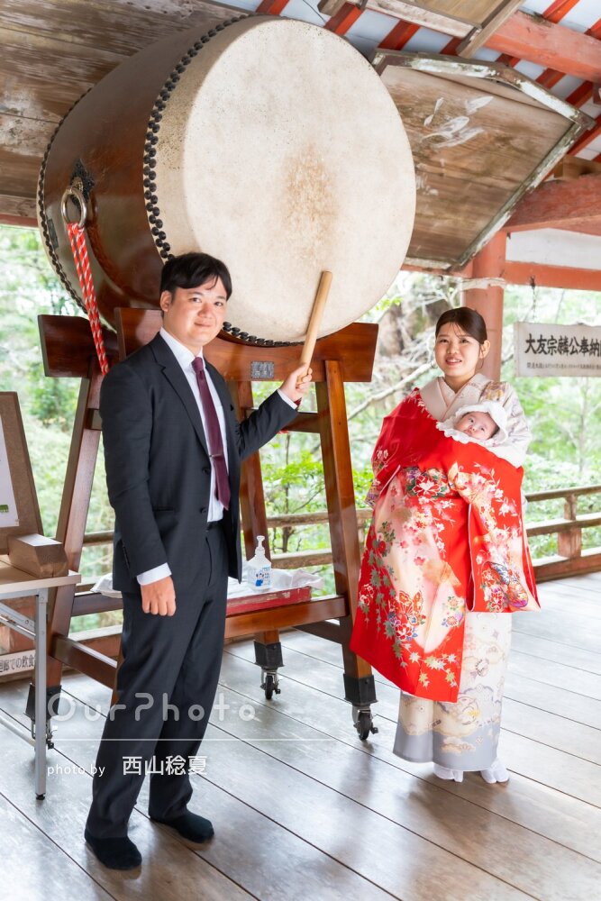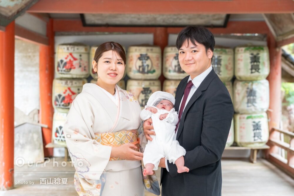 天気が崩れそうで神社も大安の日で混雑している中でしたが出来る限り良い写真をと工夫してくださりありがとうございました。赤ちゃんが泣いて産着が崩れたりもしましたが整えて頂いたり写真以外のお気遣いもありがたかったです