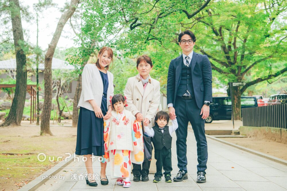 お会いした瞬間から楽しく声をかけてくださり、子供も楽しい時間を過ごせて、とても嬉しそうな楽しそうな写真も、七五三!という写真も、素敵なお写真をたくさん撮っていただきとってもとっても満足しています。ありがとうございました。