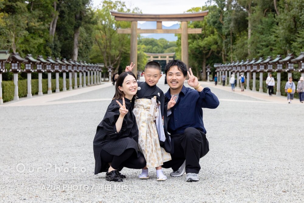 また、当日は早めにお越しいただき、祈祷終了後、すぐに撮影を開始することができ、お陰様で雨に降られることなく、終了することができました。