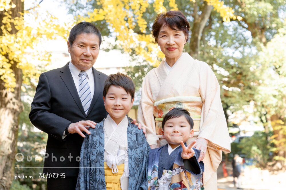 両家を呼んで参拝客が多い中でしたので、大変だったと思いますが、集合写真は、きれいに建物や背景が映るよう指示してくださってとてもよい写真になりました。