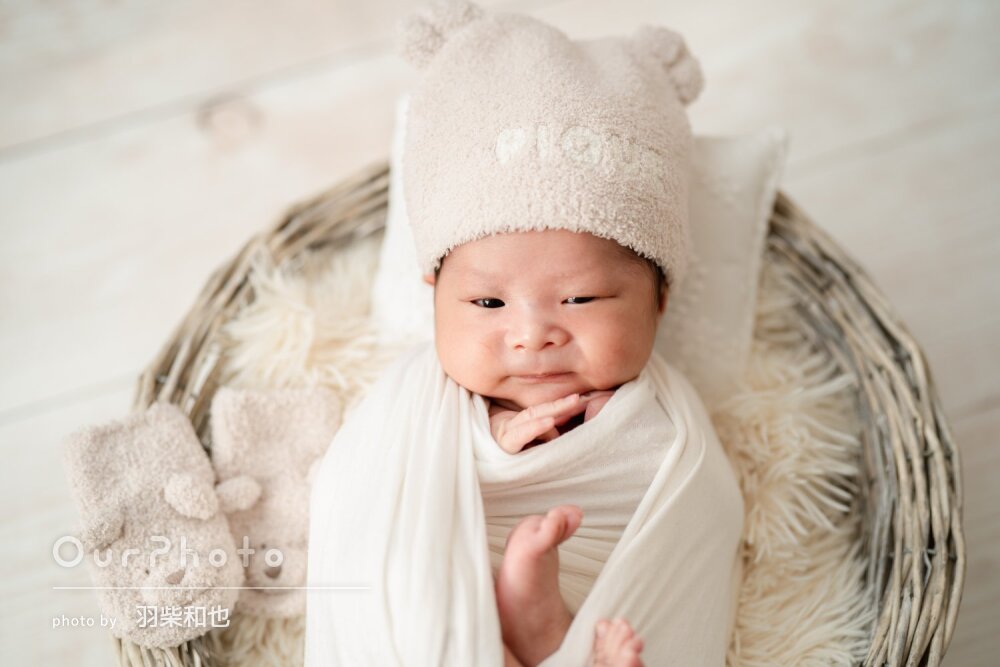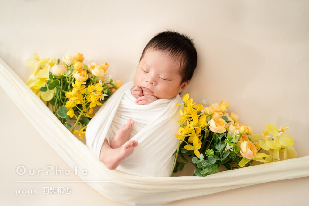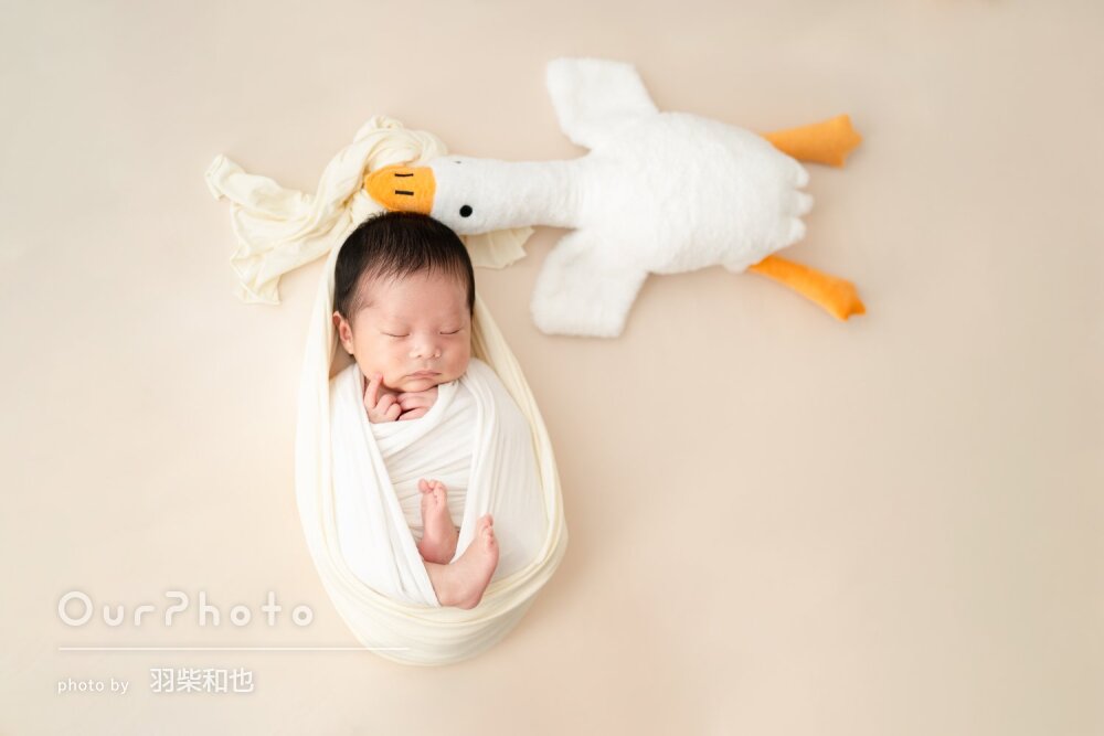 生まれたて1ヶ月とイヤイヤ期2歳の子どもを連れての撮影でしたが、アシスタントの方と連携して色々な工夫をしてくださったので、家族全員楽しんで撮影していただくことができました。