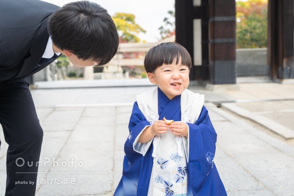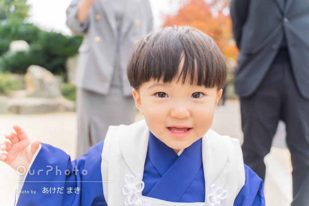 2歳2ヶ月での七五三だったので、まだまだ指示が通らない息子でしたが、カメラ目線の写真や笑顔の写真をたくさん撮っていただきました!