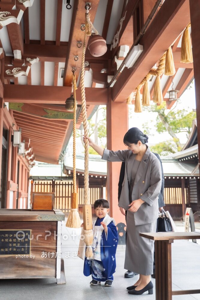 初めての七五三、初めての撮影で段取りも何もわかっていない状態でしたが、実績豊富なおかさんに身を委ねて撮影してもらいました。撮影しながら、こういう所で撮るのかと、なるほどと関心しながらあっという間に終わり、予定通りにご祈祷済ませることが出来ました。