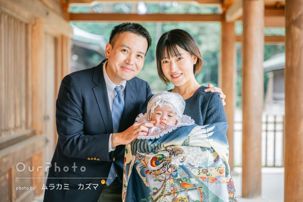 まさに自然体な笑顔の写真をたくさん撮っていただけました!写真を撮られるとき普段は固まってしまう上の子の自然な表情がたくさん撮れていたり、お宮参りというイベントとしての家族写真も撮っていただけて、家族からもいい写真だねと、とても評判が良いです。