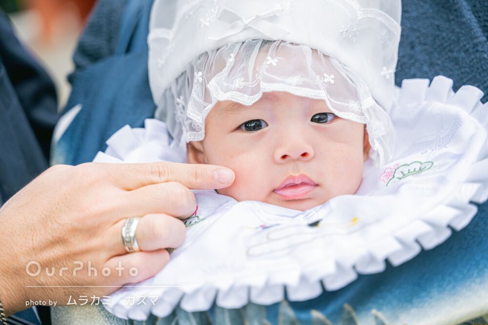 お宮参りのロケーションフォトで自然体な写真を撮ってくださる方を探していて、お願いしました。