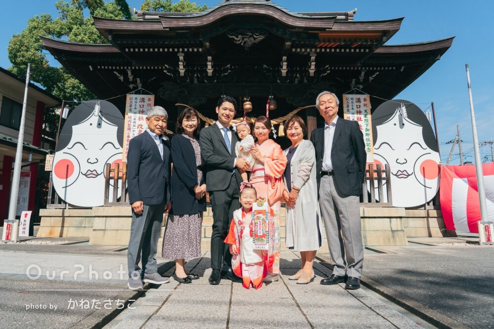 親族含め7人でのお宮参りの撮影をお願いしました。1時間の枠で7人の撮影だったので、色々と大変だったと思いますが、みんなとコミュニケーションを取りつつ、スムーズに撮影してくださりました。