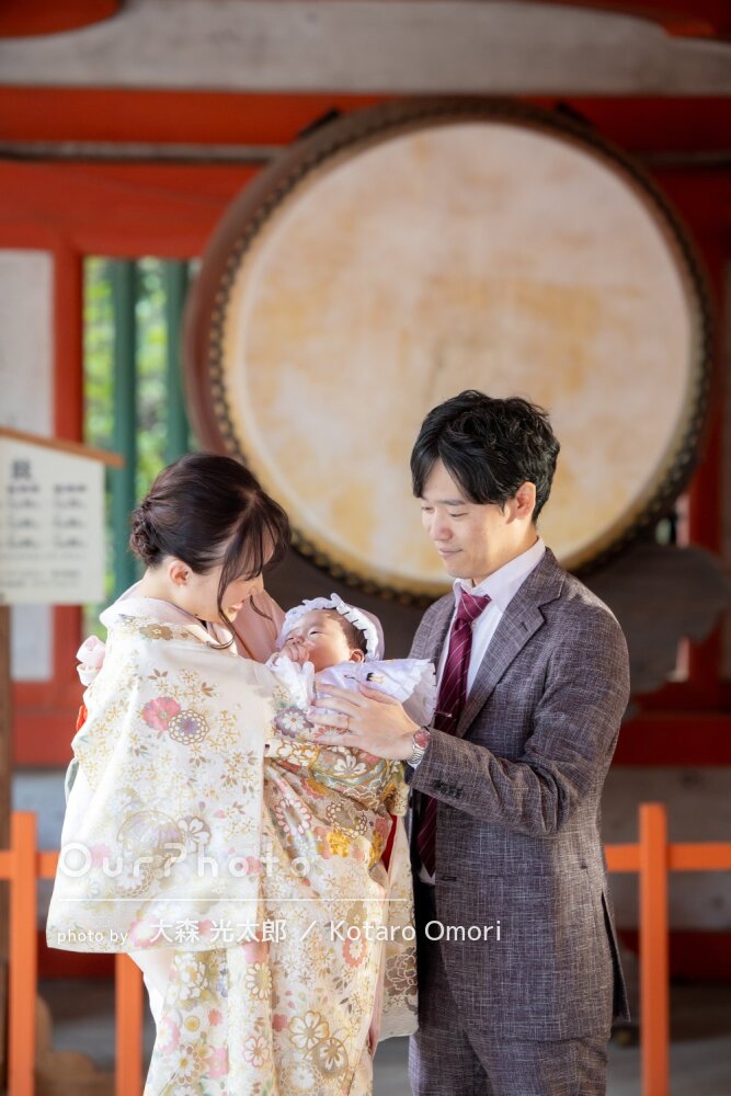 お宮参りの撮影をお願いしました。私たちが神社に到着する前から、すでに現地に入ってくださっていて、神社とのやり取りや準備を進めてくださっていました。そのおかげで、とてもスムーズに撮影を始めることができ、安心してお任せすることができました。