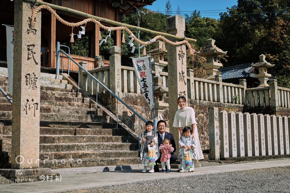 5歳の七五三のお参りの撮影お願いしましが、大正解でした!自然な写真とちゃんとした家族写真と素敵に撮っていただきました。