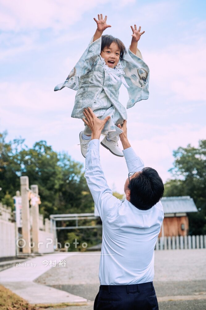 子供の自然な表情を捉えた、とても素敵な写真ばかりで大満足です。神社の美しい背景と光を活かした、素晴らしい仕上がりでした。