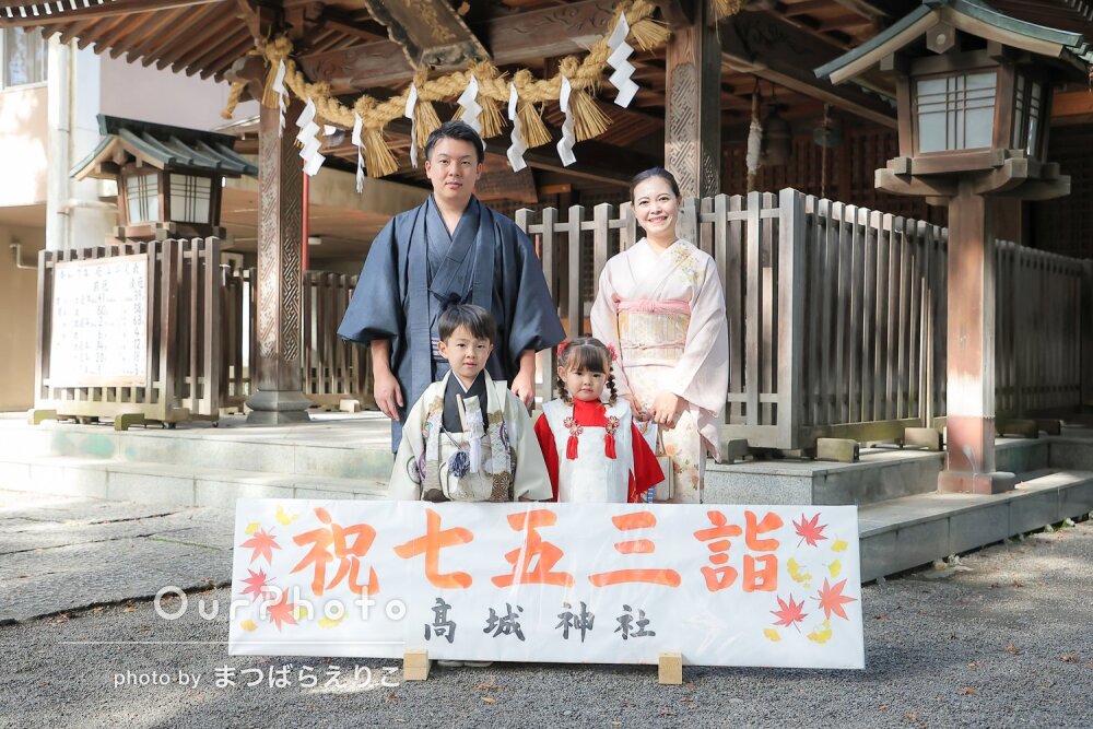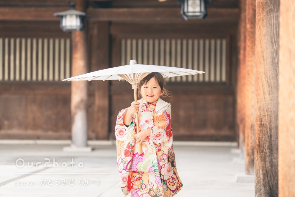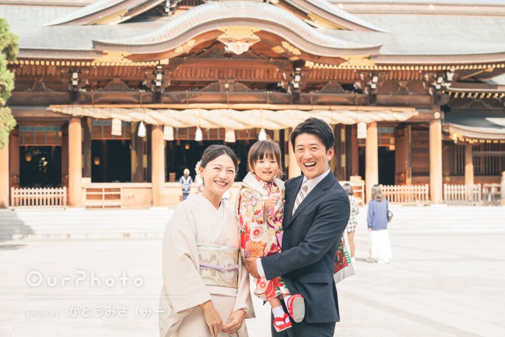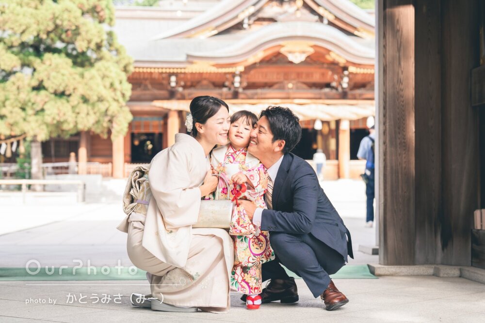 七五三撮影、ありがとうございました。当日、祈祷時間が少しずれたにも関わらず、嫌な顔せず待ってくださり、その後もたくさん撮影していただきました。撮影していただいた写真は、どれもすてきで、私たち家族の宝物が増えました。ありがとうございました。