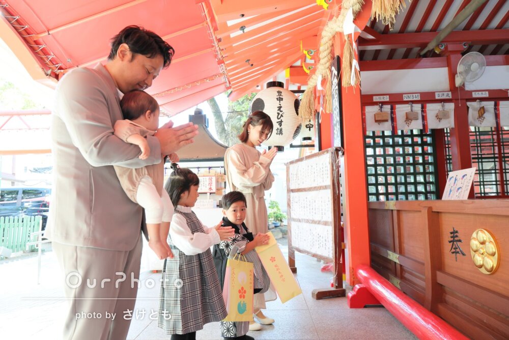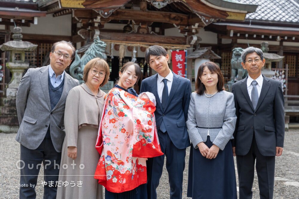 前回と比べ、写真の美しさ、撮り方、撮影の流れが非常によく、スムーズに終えることができました。撮影前に、宮司さんに挨拶をしていただき、宮司さんも撮影を快諾してくれました。撮影中は、撮られる側が気持ち良くなるよう常にお声がけをしていただき、笑顔で写真を撮ることができました。