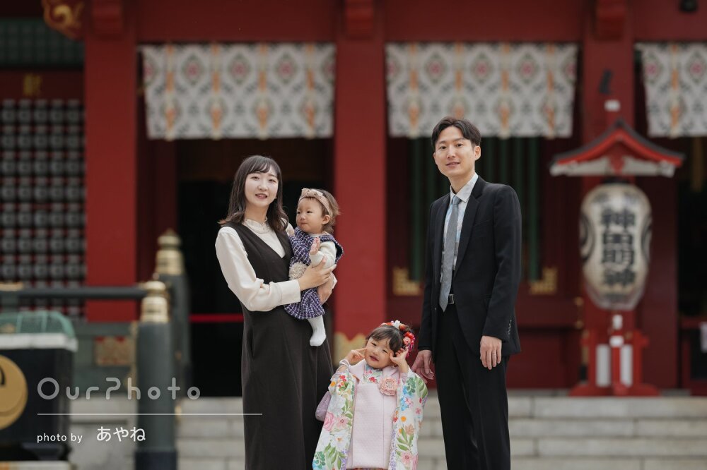 今回はお宮参り&七五三のお写真をお願いしました。3歳の娘の機嫌や、0歳の息子の状況をみながら的確な時間配分で撮影頂き、とても良い写真が撮れました。
