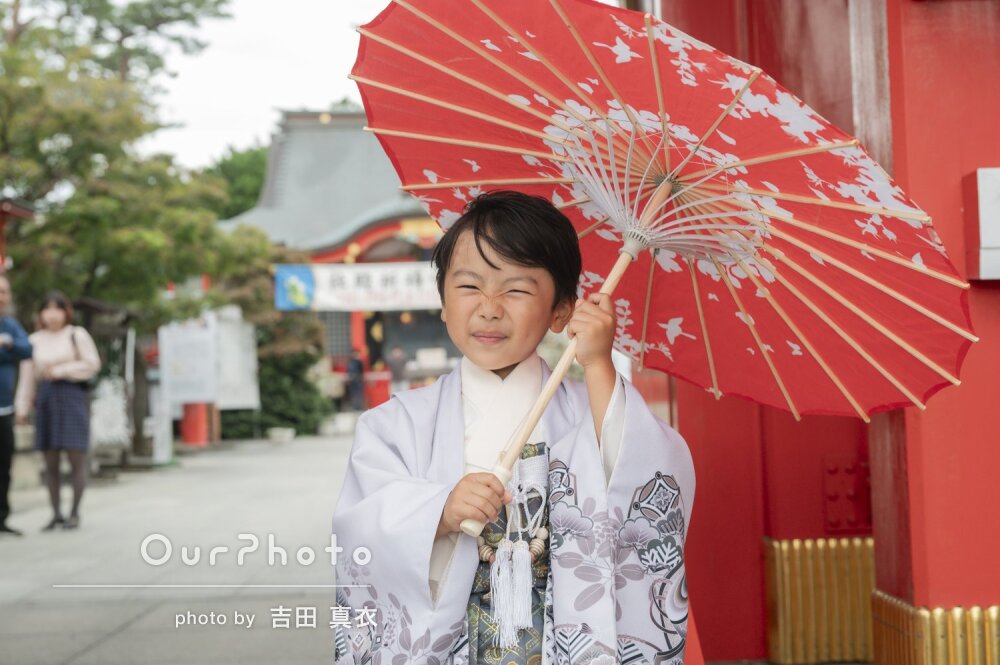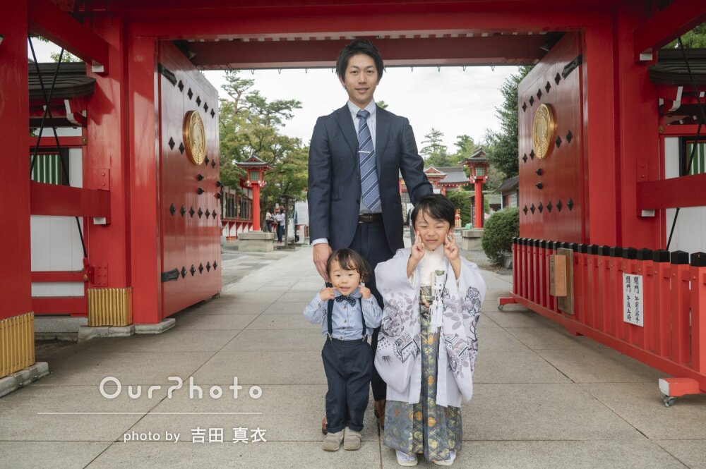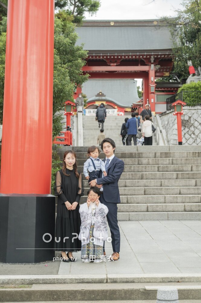 子供が慣れない場所と人に緊張していて、中々いつもの笑顔は出ませんでしたが、短い時間の中でたくさん撮影していただき、また家族での記念写真も増え、七五三のいい思い出になりました。最初、写真館と悩みましたが、外で撮影できてとても良かったです。ありがとうございました!