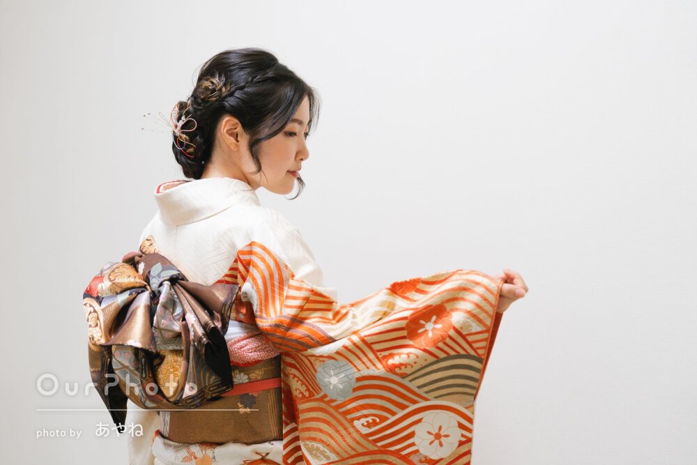 神社近辺でのロケーションフォトをお願いしたのですが、ご用意いただいた小物と着物、背景がとても合っていて、素敵なお写真ばかり。良い思い出ができました。