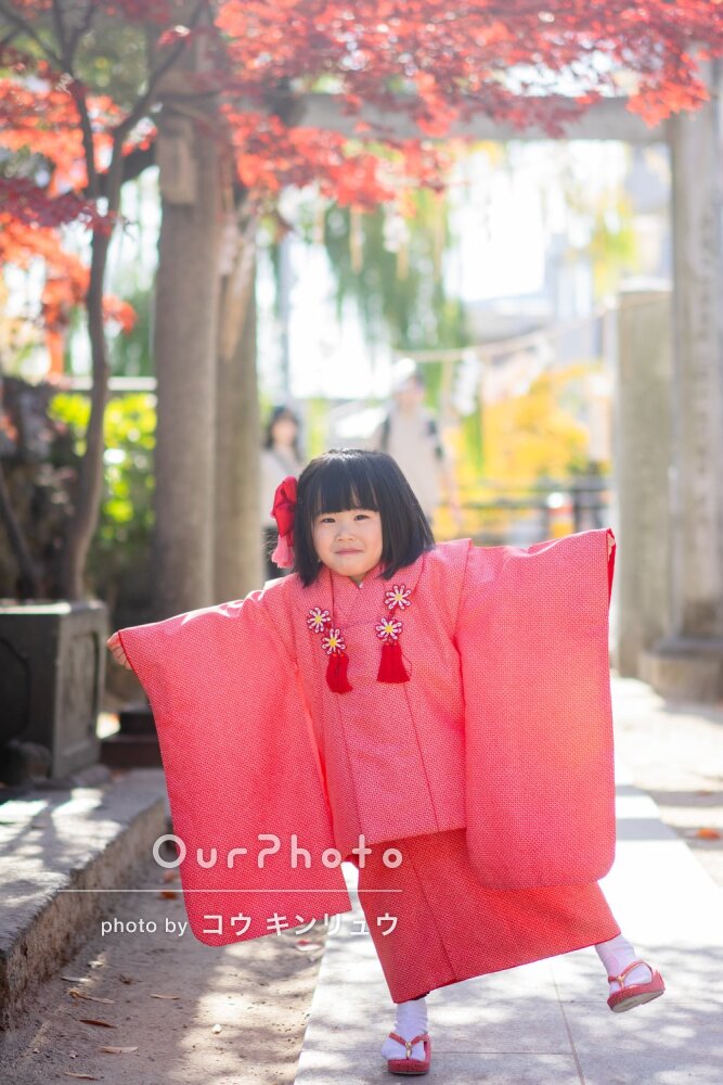 撮影場所や立ち位置、立ち方や着物の角度直しまで細かく見ていただけたので、完全にお任せすることが出来ました。最初は厳かな写真から始まり、笑顔の写真、逆光を活かした明るい写真、躍動感のある写真と、様々な写真を撮っていただけました。