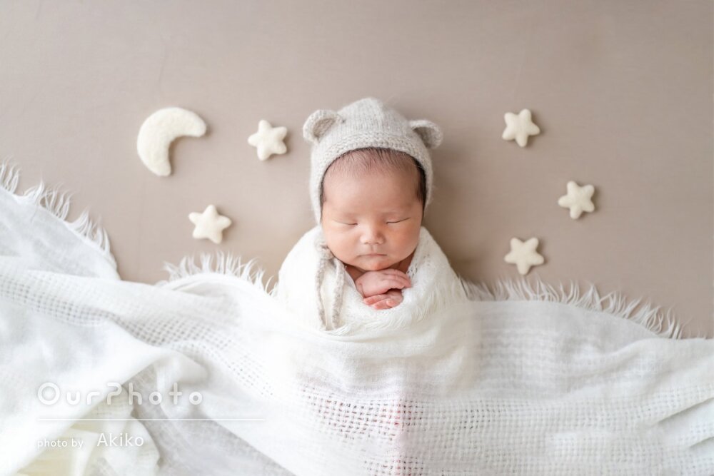 私たちが求めていた“自然なタッチ”で撮っていただき、柔らかいおくるみの雰囲気もとても素敵でした。