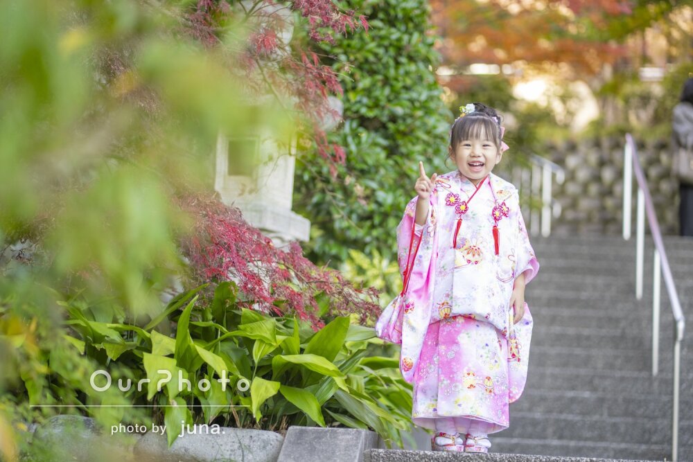 3歳娘の七五三の写真をお願いしました。当日雨予報だった為、前日に延期をお願いしましたが、快く引き受けてくださいました。撮影当日はやっと天気にも恵まれ、紅葉も綺麗で、素敵に撮って頂きました。緊張気味の娘でしたがjuna.さんの声掛けで段々と笑顔になり、楽しい撮影となりました。あっという間の1時間でした。ありがとうございました。