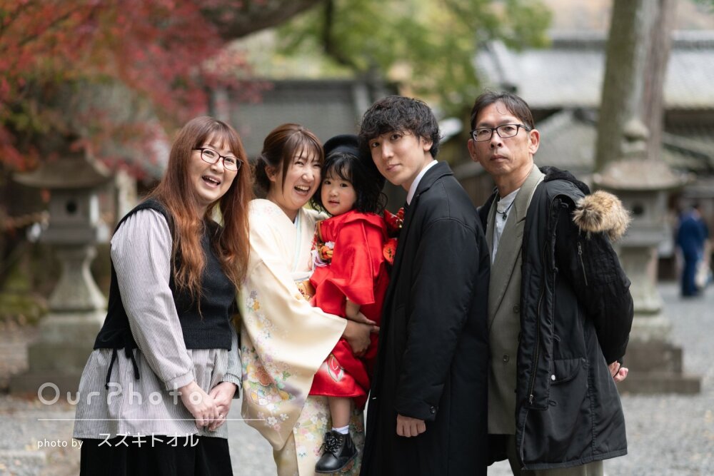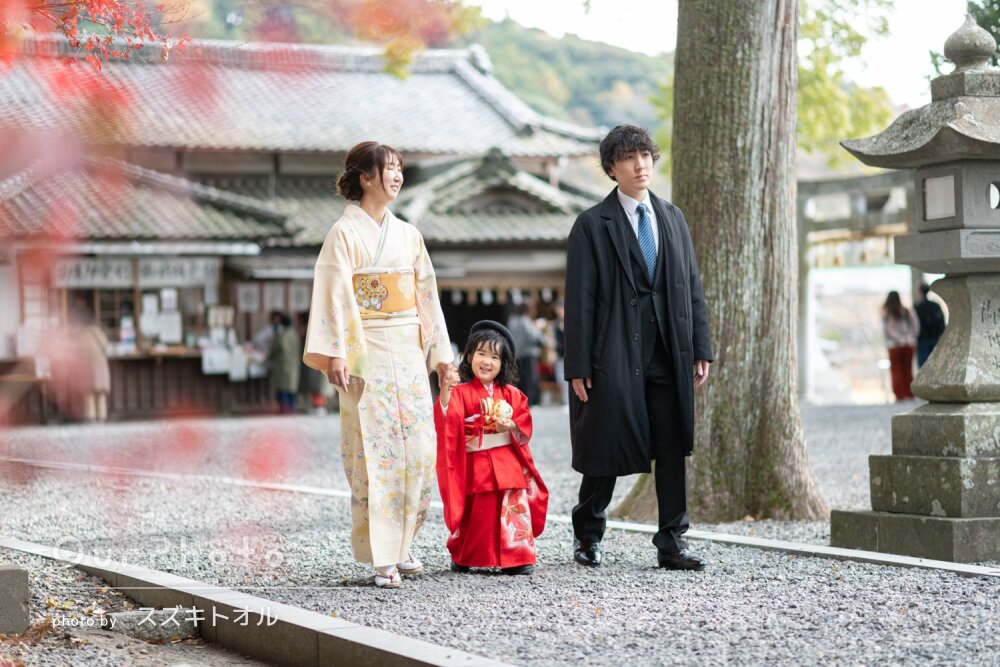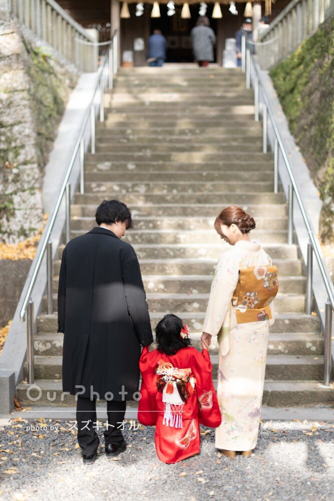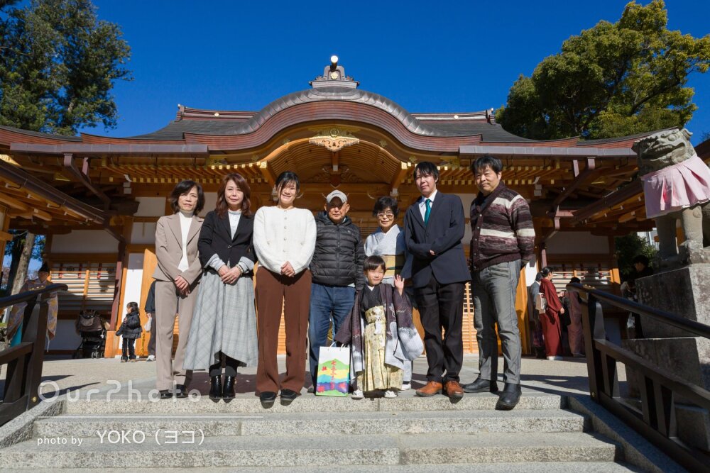 仕上がった写真も非常に満足のいくもので、家族写真やお参りの様子だけでなく、着物の柄や髪飾りなど細かな部分まで丁寧に残してくださっていました。