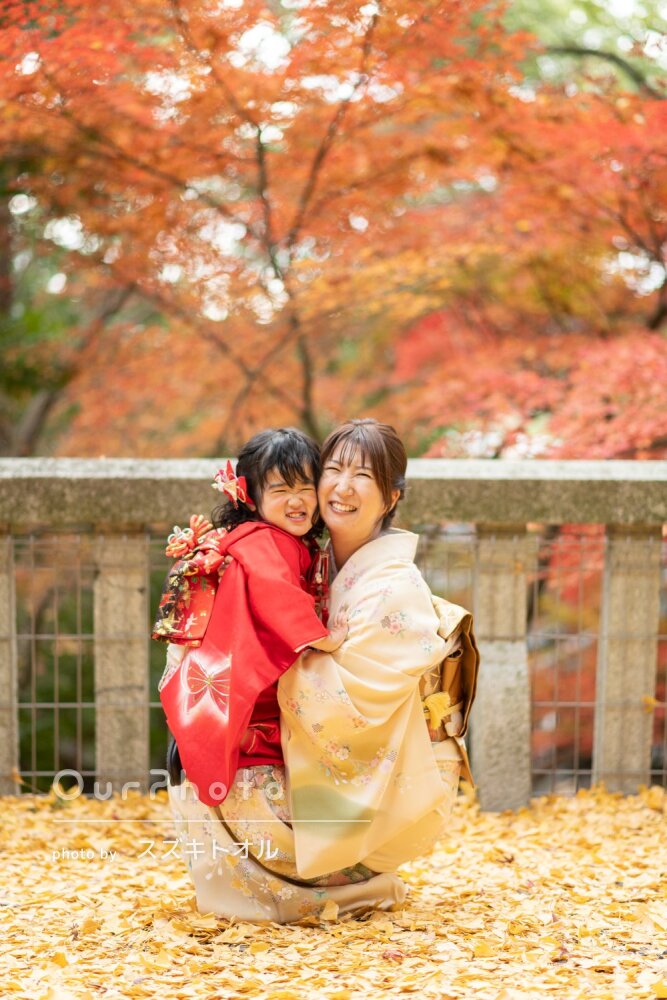 紅葉の中での家族写真をどうしても撮りたかったのですが、子供が体調を崩し、なかなか予定が決まらず...撮影日の2日前に体調が回復し、急遽まえだ様にお願いをしました。