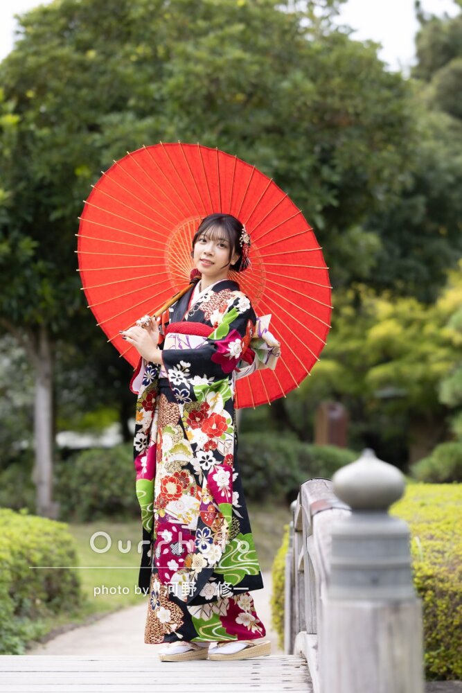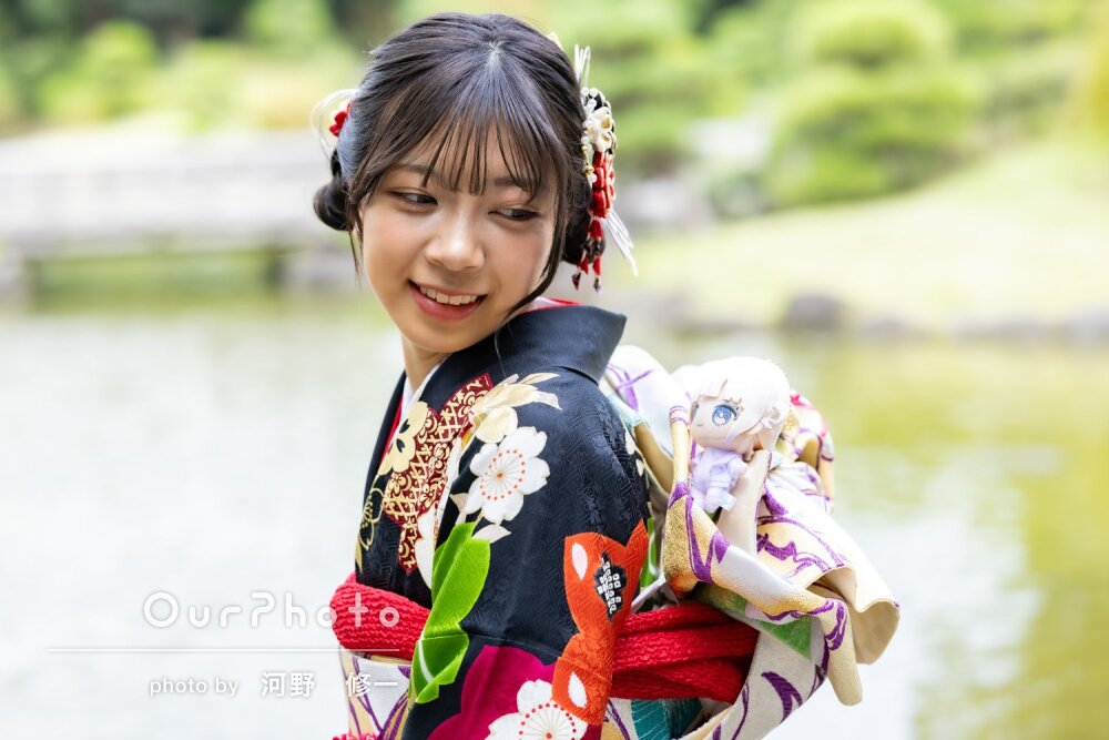 写真は、背景の庭園と振袖がマッチした本当にきれいな写真で、家族みんな喜んでおります。