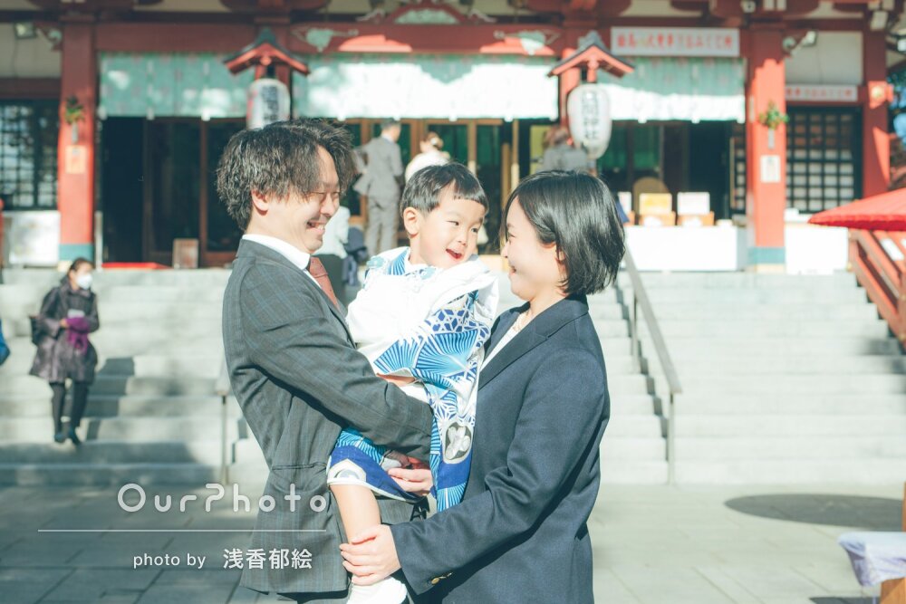 このたびは、長男の七五三と次男のお宮参りの撮影をしていただき、誠にありがとうございました。とても優しく接してくださったおかげで、長男もすぐに打ち解けて、のりのりで楽しそうに撮影してもらっていました。私たち家族もその様子を見て、とても嬉しく安心できました。