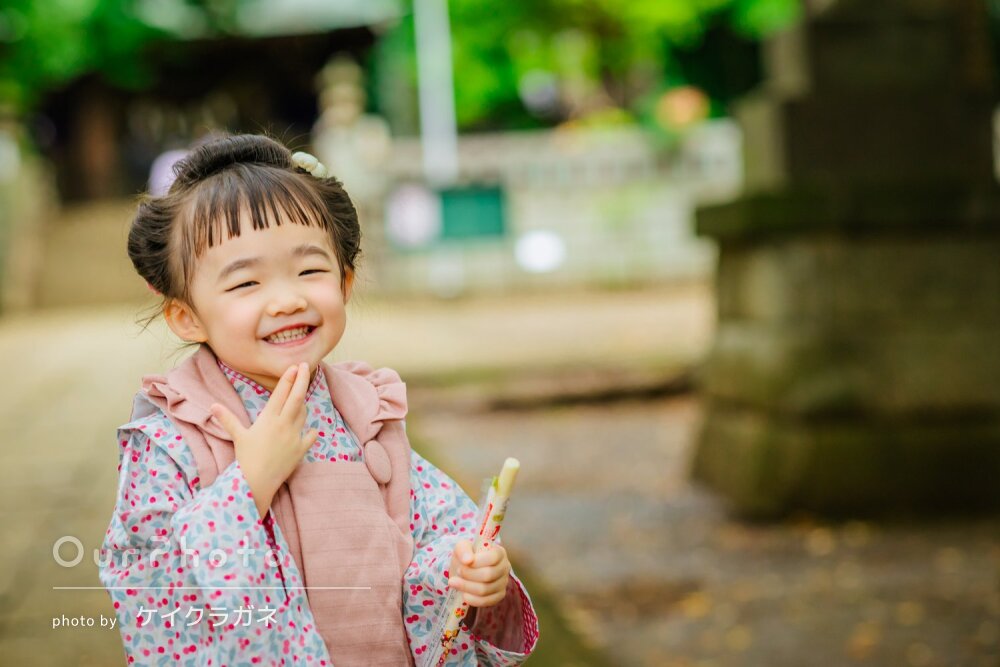 今回は前回とは異なる神社での撮影でしたが、撮影スポットやポーズを次々とご提案くださり、テンポよく進めていただいたおかげで、子供たちが飽きることもなく楽しく撮影できました。