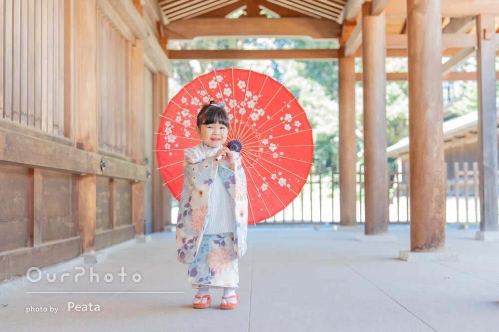 肌寒い中、たくさんの笑顔を引き出していただき、ありがとうございます。撮影しながら小道具をテキパキご準備されるなんて、さすがです!娘は「ドラえもんの秘密道具みないだね」と話していました。伸縮性の和傘があるとは(笑)短時間で色んなポーズを指示してもらえたので、助かりました(親はピースサインぐらいしか考えられず…)そして納品の早さにも感謝いたします。遠方の祖父母達も「え~!?凄いね!」と大変喜んでいました。3歳の時のご縁を繋いで依頼して良かったです。ご多忙な中、本当にありがとうございました。