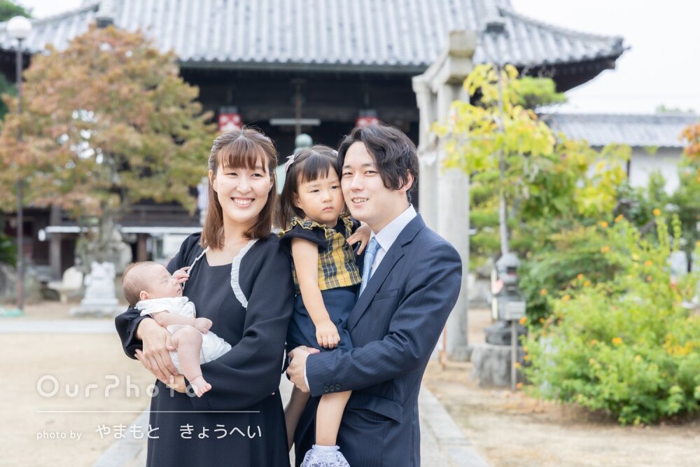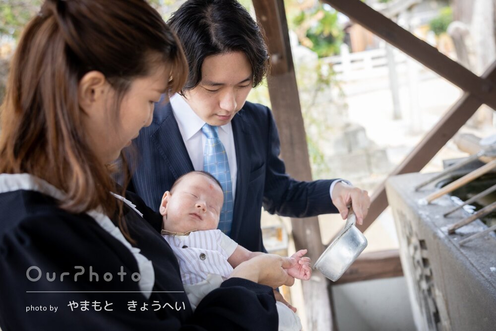 お天気が心配でしたが、テキパキと撮影してくださったおかげで、赤ちゃんもぐずることなくスムーズに終えることができました。