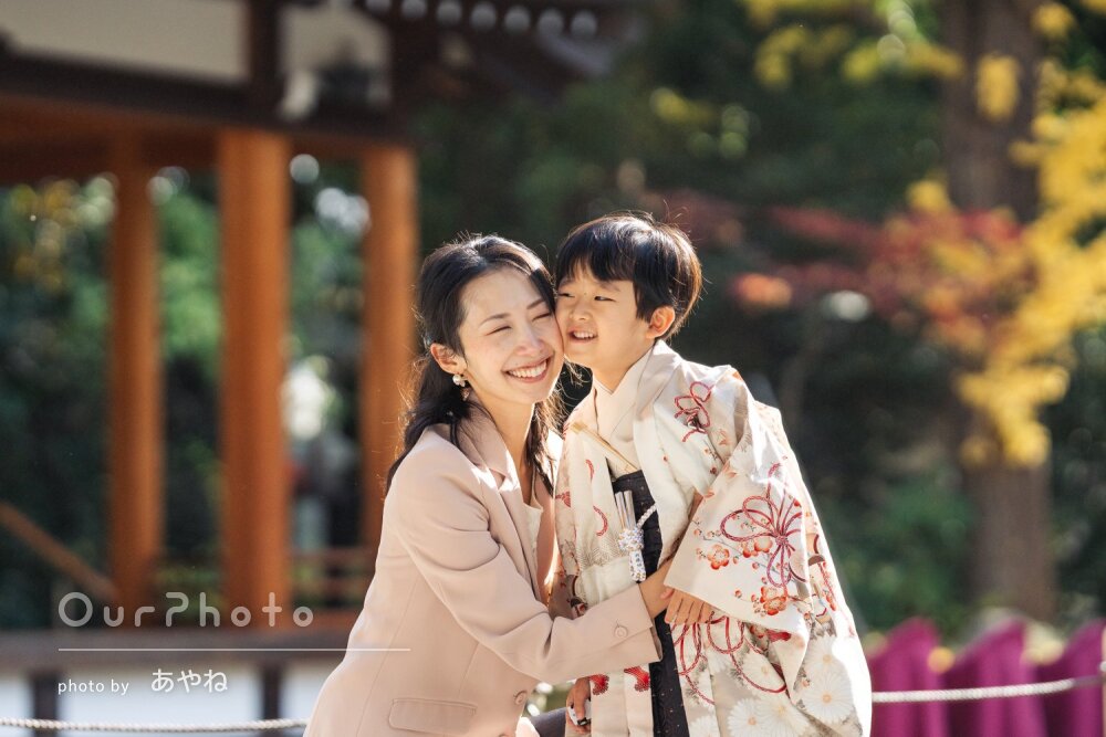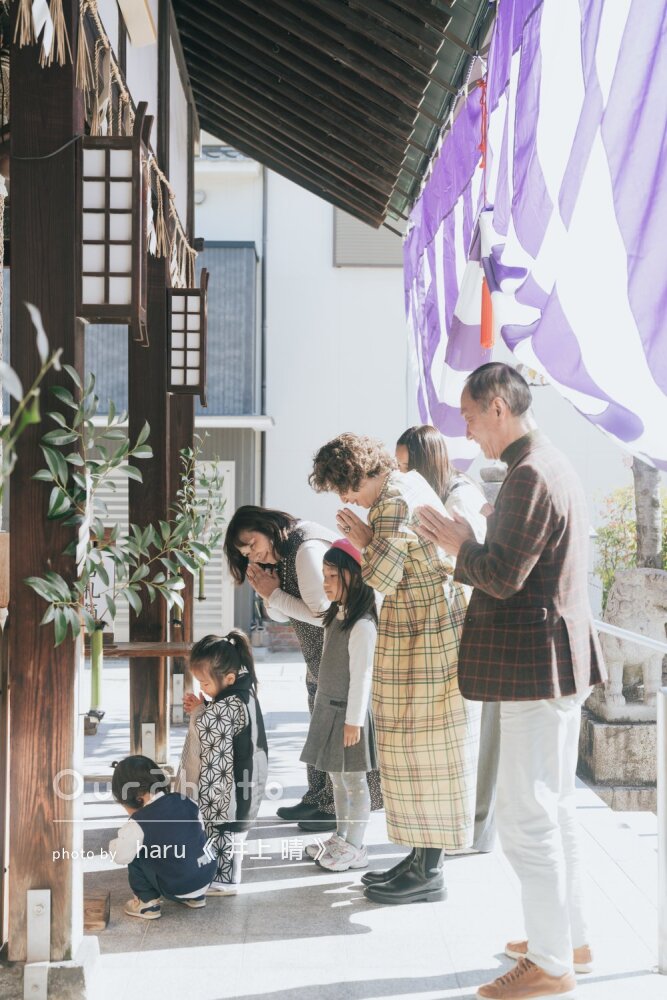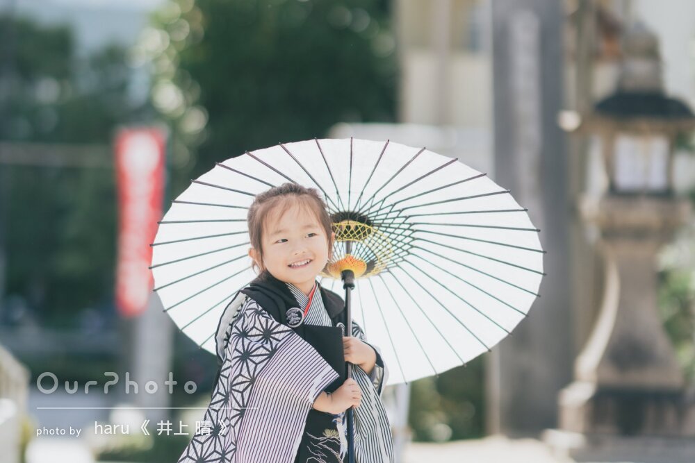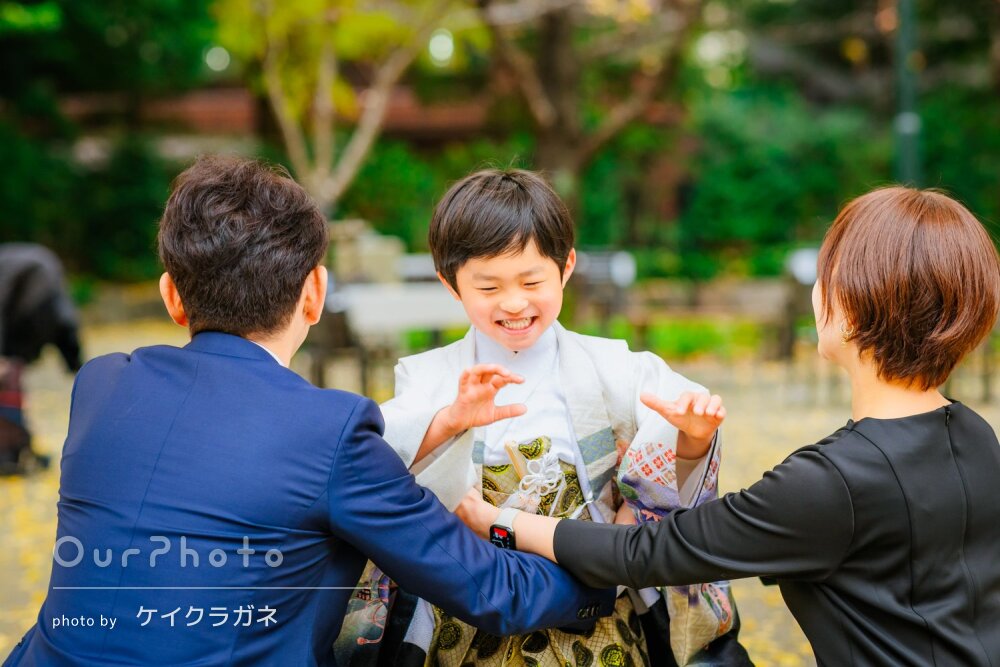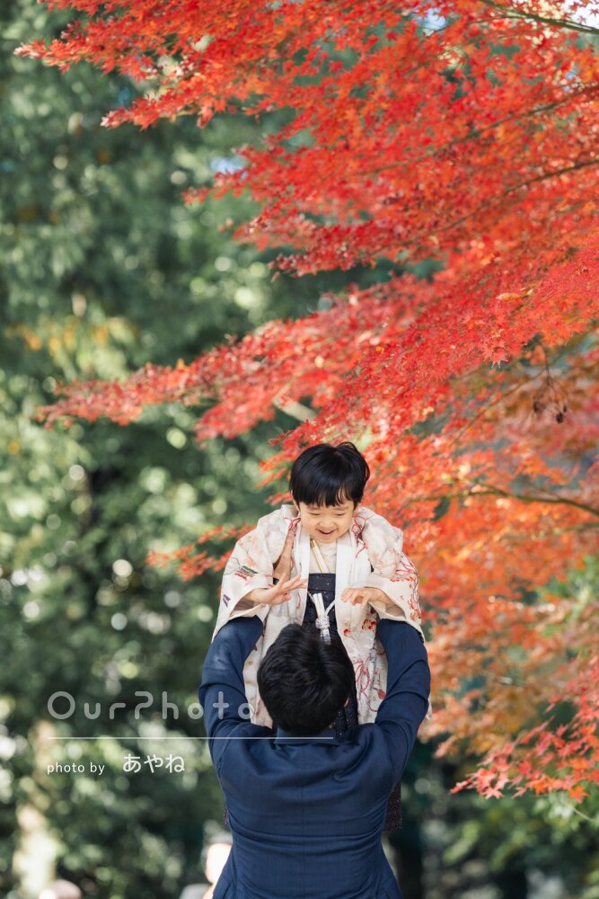 先日はありがとうございました。広い境内でここぞという撮影スポットを見つけてテキパキと誘導してくださり、本当に素敵な写真を沢山撮っていただきました。大変満足しております。子供の集中力が切れてふざけ始めても、グッズを貸していただいたり飽きない工夫をしてくださって、ひょうきんな表情も沢山納めていただきました。納品数も想像以上でした。次回もどうぞよろしくお願いします。