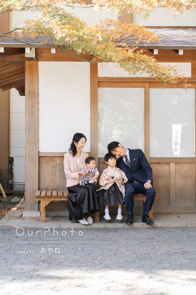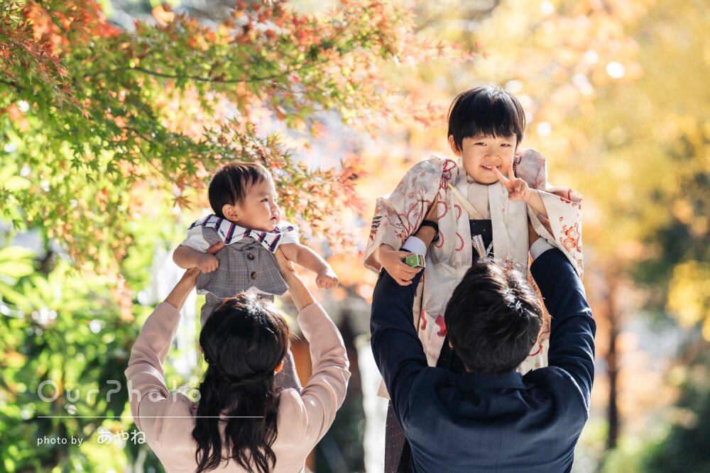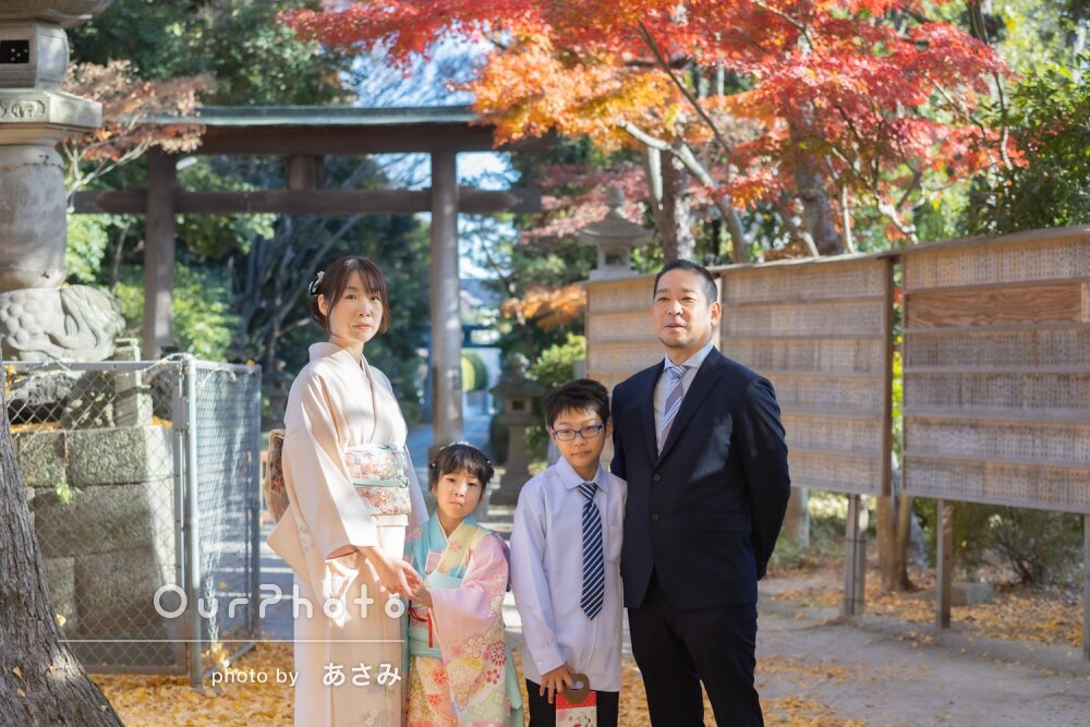納品いただいた写真の紅葉が素晴らしくて、その前に立つ私たち家族も光っているような素敵なものを撮影いただきました。
