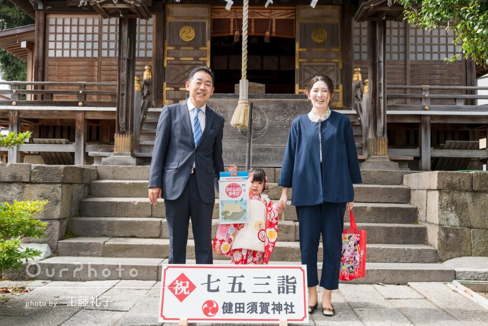 事前のやりとりもとても丁寧かつスムーズで、すぐに返信してくださり、安心してお任せすることができました。七五三の撮影でしたが、子どもにもポーズなど細かく教えてくださり、たくさん素敵な写真を撮影して頂きました。背景の切り取り方がとてもお上手で、平日の撮影であまり混雑していなかったこともあるかもしれませんが、人がいない絵になるポイントを素早く選んでくださるので、神社を貸し切ったかのような素敵な写真が多く、とてもいい記念になりました。また機会があればぜひお願いしたいです。ありがとうございました。