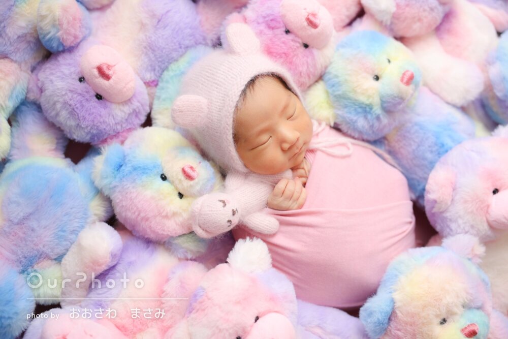 手際よくいろんなパターンで撮影してくださり、赤ちゃんがぐっすり寝ている間に可愛い写真を撮影していただけました。