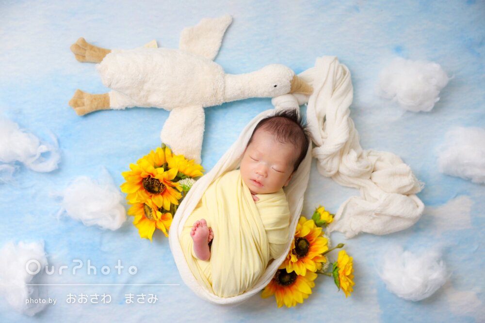 マタニティフォトに続き、ニューボーンフォトも撮影していただきました。