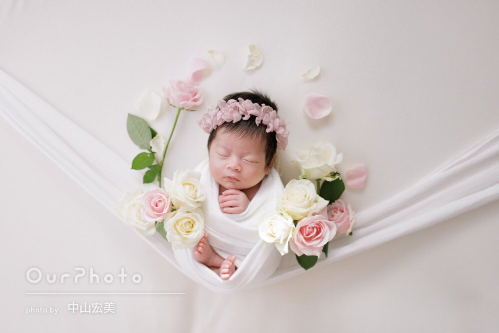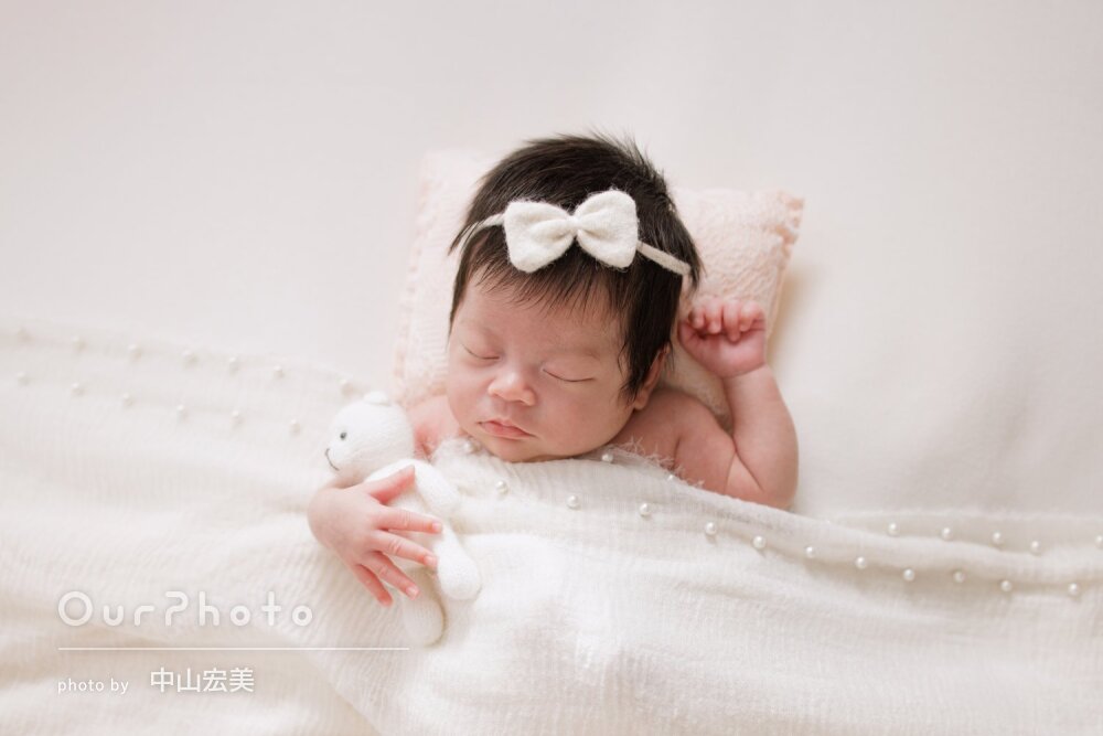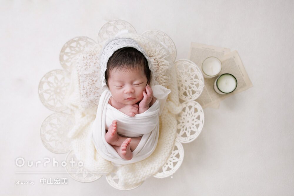 急な依頼にも関わらず、事前に丁寧なご案内をいただけたので、しっかり準備をして迎えることができました。撮影ではぐっすり眠ってもらうことができ、いろんなパターンの可愛らしい写真をたくさん撮っていただけて大満足です!
