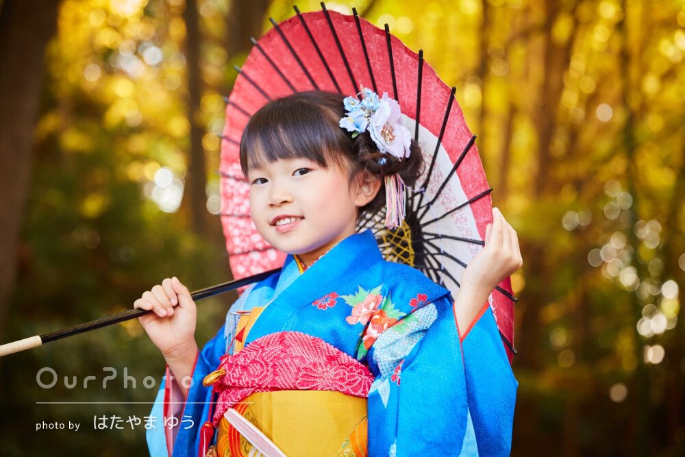 七五三でお願いしましたが、子どもにたくさん話しかけてくれながらの撮影だったので、子どもも楽しそうに撮影できました!扇子や和傘などの小物をいくつも貸してくださったので色んな写真が撮れました。