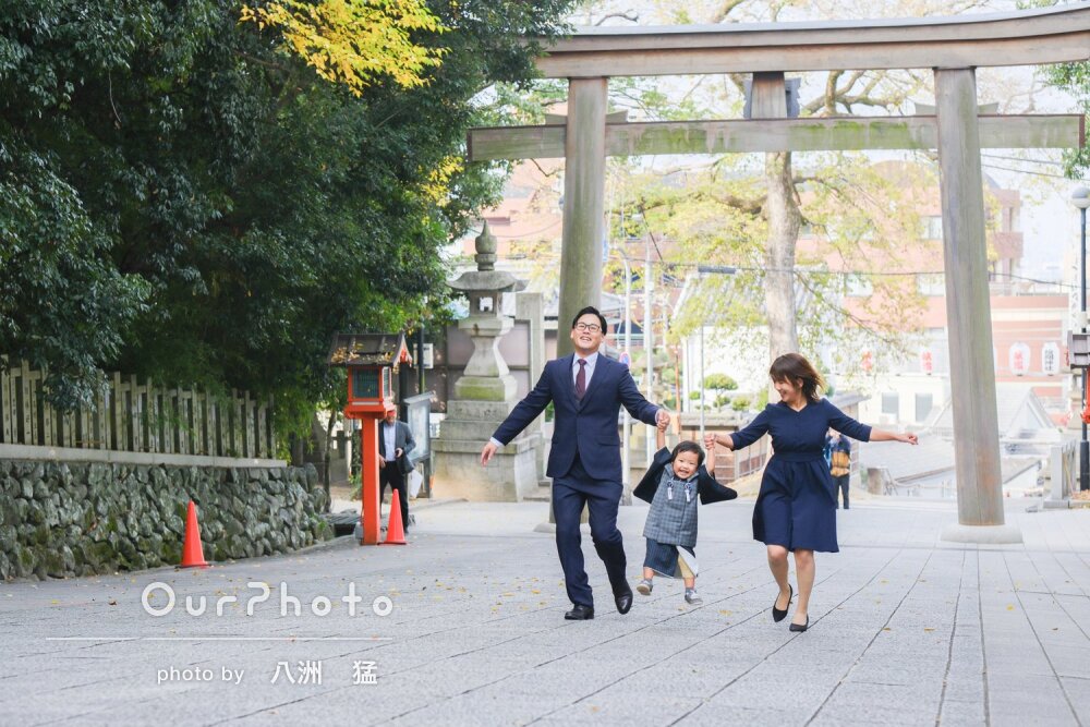 カメラマンさんがよくご存知の神社だったこともあり安心して撮影をして頂けたこと、とても心地よいお声がけで娘や家族の素の表情を引き出して頂けたことでとても素敵な写真に仕上がりました。感謝いたします。