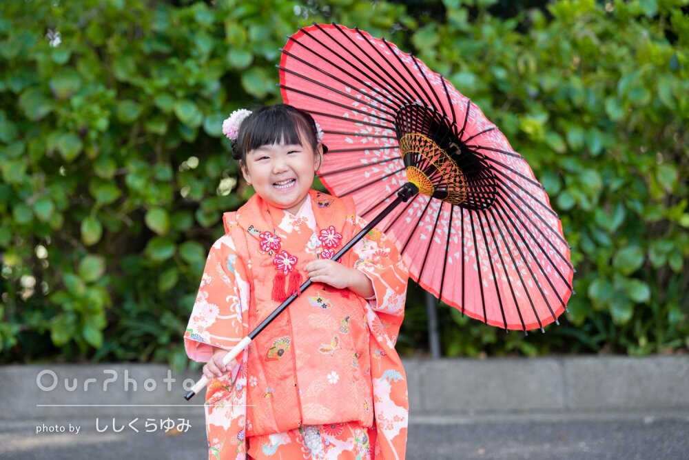 イヤイヤ期真っ只中の娘が着物屋さんで着付けを全力拒否、せっかく美容院でしたメイクも大泣きで崩れたときはどうなることかと思いましたが、結果車の中でお支度してるシーンから撮影していただいたり後から写真で見るといい思い出になったなと思います。