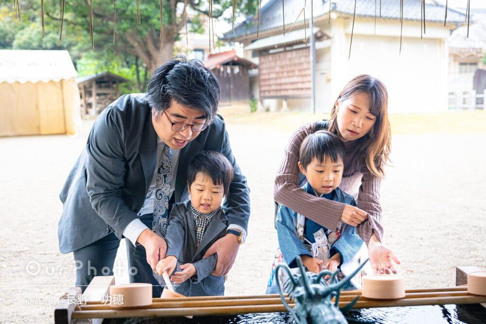 今回は息子の七五三と娘のお宮参りを同時にするにあたり、神社でのロケーションフォトをお願いしました。