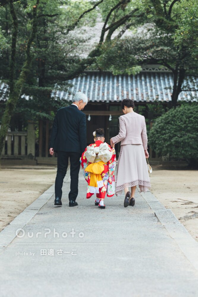 生田神社での初めての七五三撮影、三世代家族みんな緊張をしていましたが、気さくにたくさん話しかけて下さり、撮影場所の提案や、並び方の提案、ポージングの提案をして下さったので、とても楽しい七五三詣りとなりました!