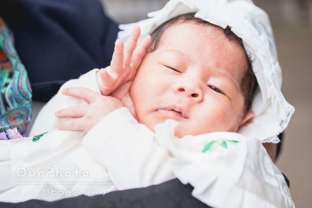 産後、思い立ってニューボーンフォトを依頼しました。予約が直前だったにもかかわらずスムーズにご対応くださり、新生児期の間に撮影していただくことができました。